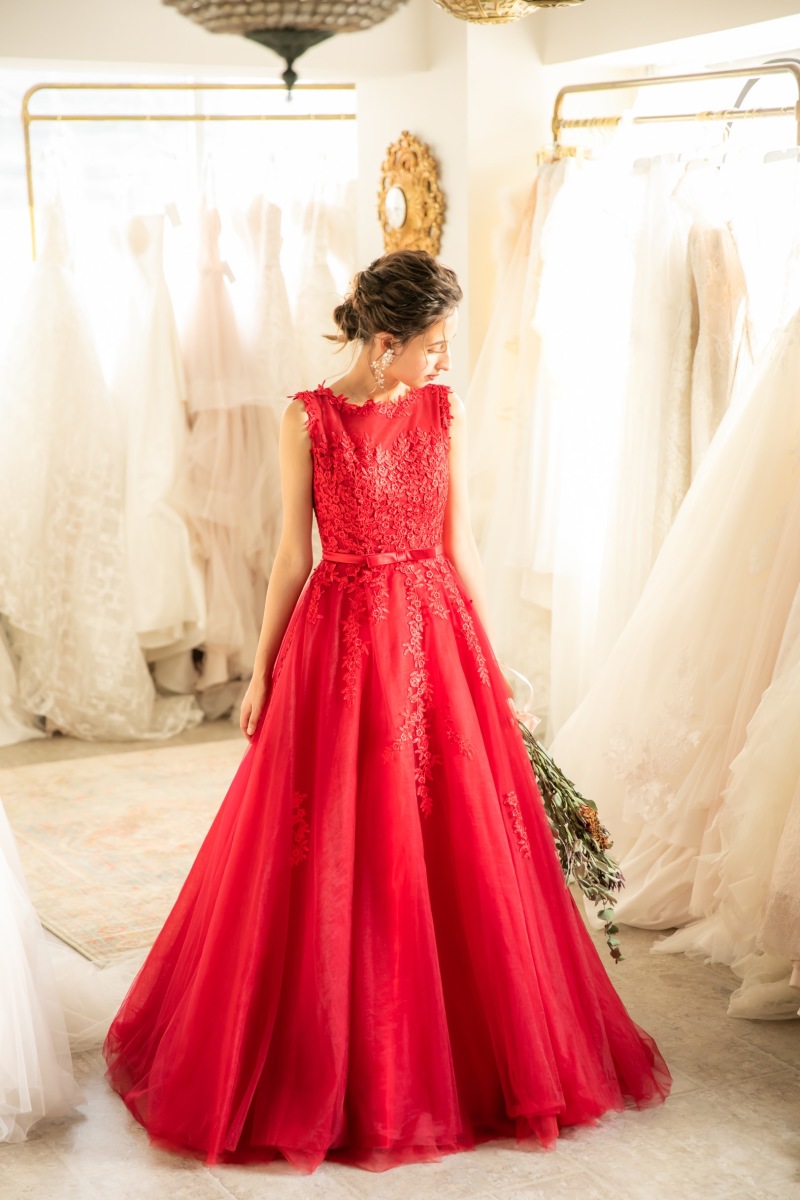 青山店 ノースリーブ レッドカラーaラインドレス 衣装 ドレス ドレリッチコレクション 東京都でフォトウェディング探すならphotorait